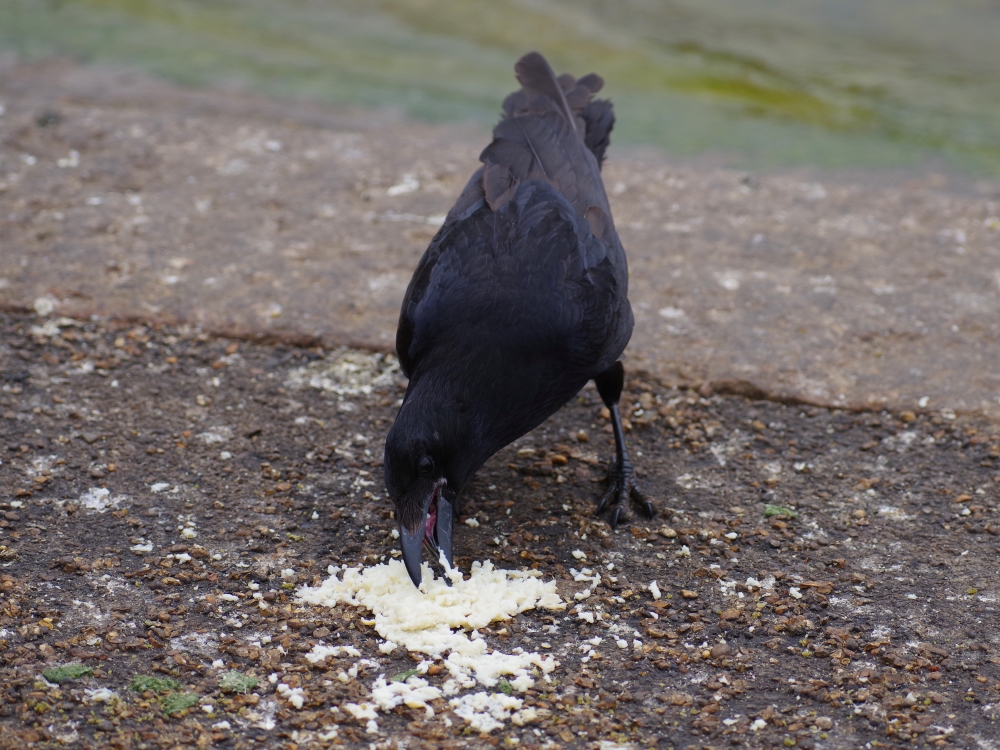 The Carrion Crows on the Parade Ground were frightened by the Royal Artillery's 41-gun salute for the Queen's birthday, and settled on the other side of the Serpentine. But this one stayed on the north shore to eat some rice.