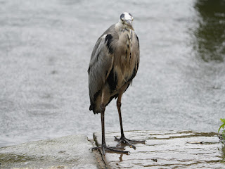 There were several heavy showers. A Grey Heron stood indifferently in the rain ...