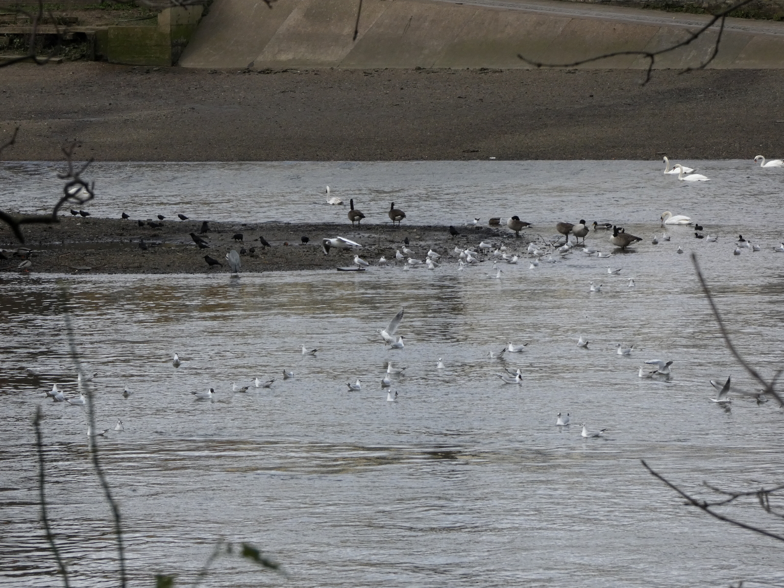 The tide was coming in but still low, and the mudflats beside the river were well populated with birds ...