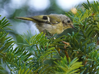 Goldcrests nest every year in the yew tree near the bridge. Here is one of the fledglings.