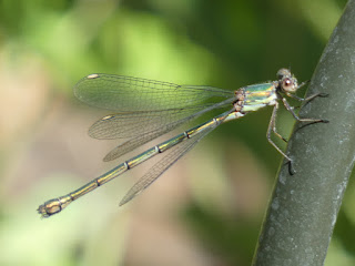 I'm sure you'll see a Willow Emerald soon, Ralph. I was coming back from Wimbledon Common yesterday & changed trains at West Brompton Station. Beside the north-bound platform is an enlarged wet ditch for want of a better description, with sallows behind & Typha at the front. There perched on a Typha leaf was a Willow Emerald. I think it briefly had a tussle with a second individual, but I lost sight of that one.