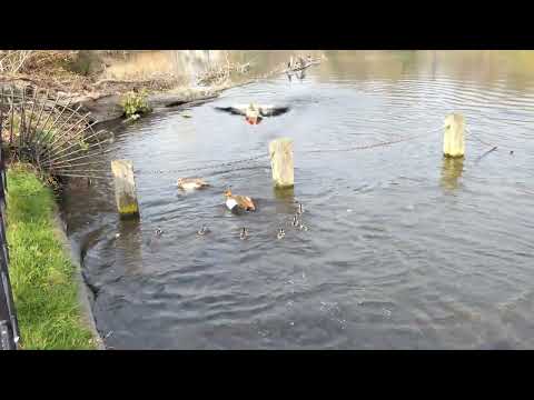 The pair of Egyptian Geese in the Italian Garden have produced eight goslings. These had absolutely no chance in the paved garden without any cover, so they had to be rescued and moved to the Long Water to take their chances with another pair of Egyptians, the Canada pair and the boss Mute Swan and his mate, all of which are hostile and dangerous. But there was nothing else that could be done for them.